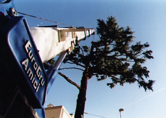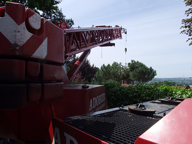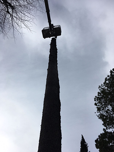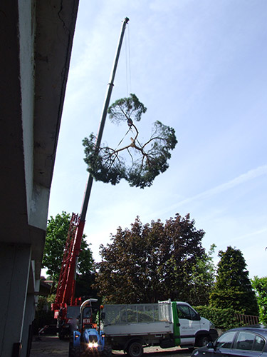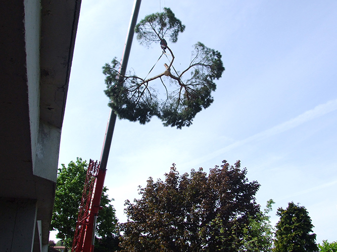 Milani Giardini è equipaggiato con strumenti adeguati e personale qualificato per l'abbattimento di grandi alberi.
