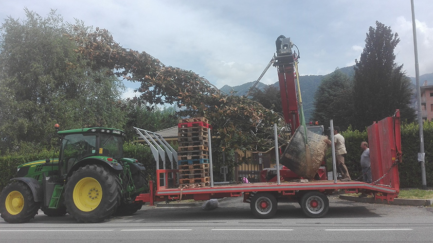 Grazie a macchine speciali, siamo in grado di spostare anche grandi alberi, sradicando la pianta in tutta sicurezza e ripiantandola con velocità nella zona desiderata.