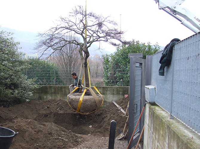 Spostare un albero già sviluppato permette di mettere in sicurezza la zona interessata, senza perdere il valore ecologico e di biodiversità della specie da trapiantare.