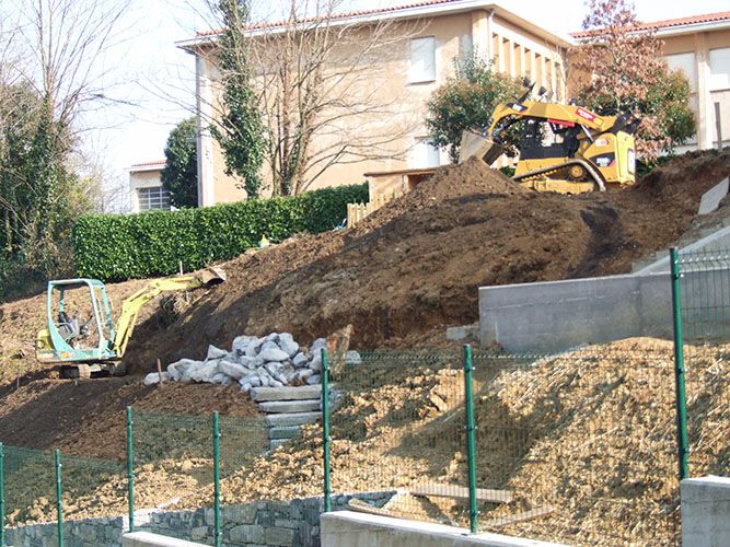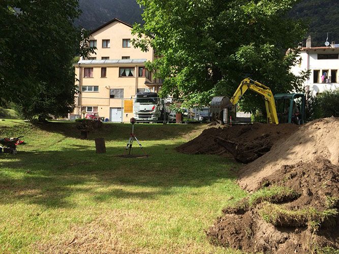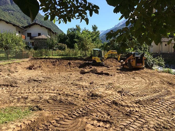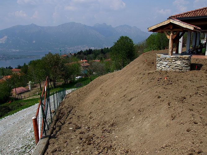Interventi professionali di modellazione del terreno per realizzare un'area verde strutturata
