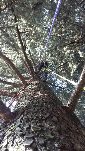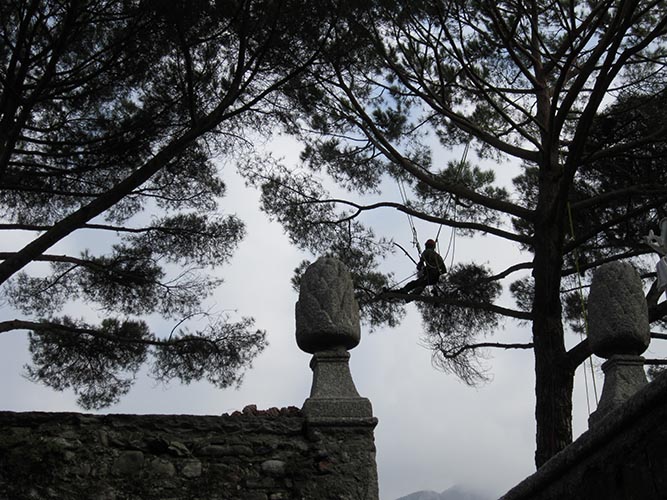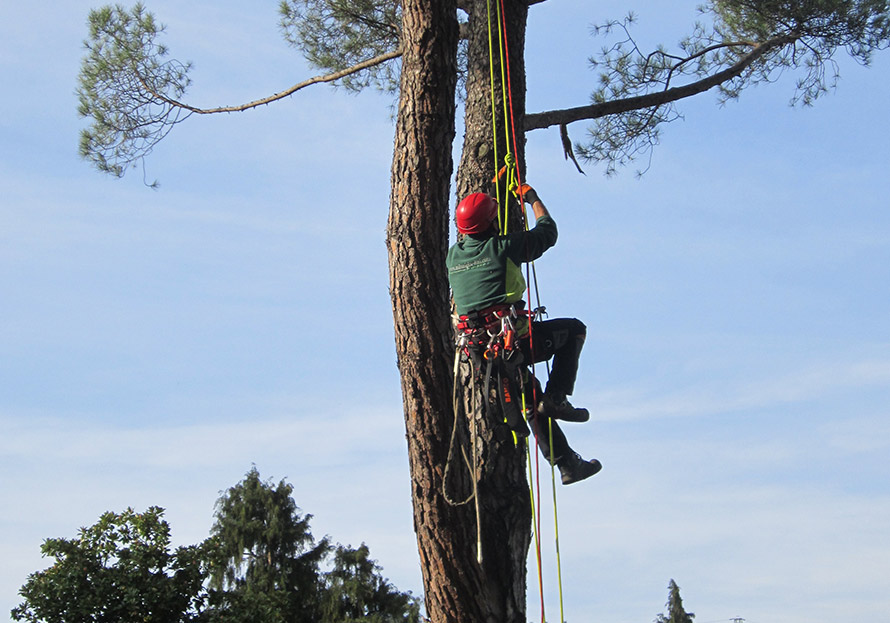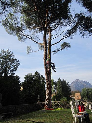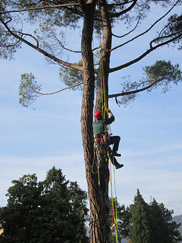 Il tree climbing non è certo la soluzione a tutte le situazioni, ma molto spesso anche per alberi che si potrebbero potare o abbattere con tecniche classiche, garantisce una maggior efficacia di intervento.